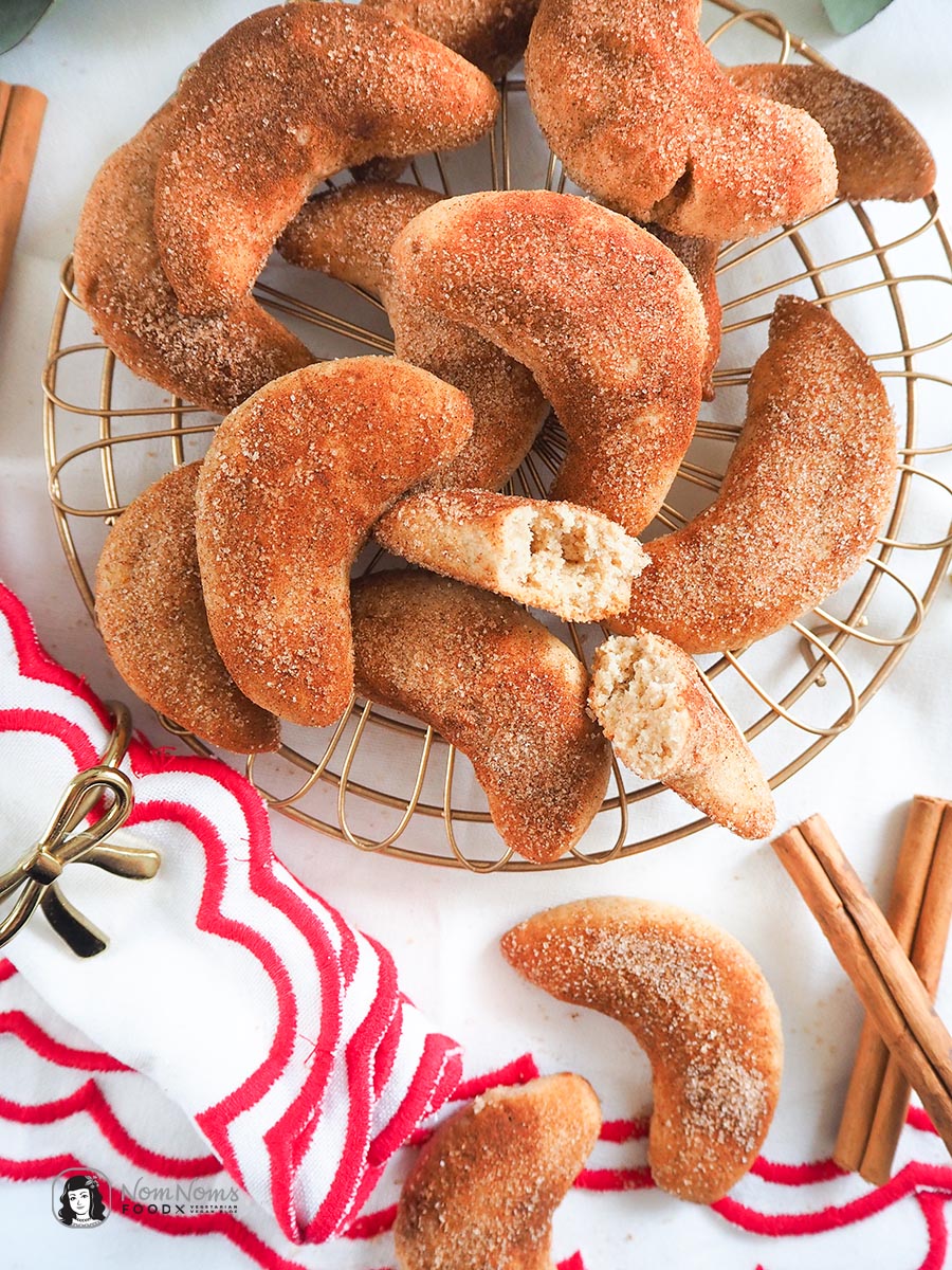 Vanillekipferl gehören für mich fest zu meinen liebsten Weihnachtsplätzchen. Der mürbe Teig, der feine Vanillegeschmack, einfach ein köstliches Gesamtkonzept für ein Plätzchen. Die Konsistenz ist mürbe, fast schmelzend, ohne trocken zu sein. Gerade weil Vanillekipferl so schlicht sind, lassen sie sich wunderbar variieren. Eine kleine Anpassung im Aroma genügt, um ihnen eine neue Richtung zu geben, ohne ihren typischen Charakter zu verlieren – wie hier mit Zimt. Sie passen zu Kaffee, Tee oder einfach zwischendurch und sind oft schneller aufgegessen, als man denkt. Vanillekipferl zeigen, dass weniger manchmal wirklich mehr ist und das gerade in der Weihnachtsbäckerei.